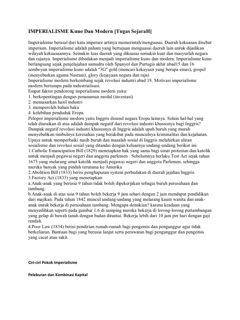 Imperialisme dapat dibagi menjadi dua macam yaitu imperialisme kuno dan imperialisme modern. Intervensi pemerintah dijalankan sekecil mungkin Ciri-Ciri dan Perbedaan Imperialisme Kuno dan Modern - Imperialisme merupakan suatu. Berita adalah sebuah waian tentang fakta dan atau pendapat yangmengandung nilai berita dan yang sudah disajikan melalui media massaperiodik1.