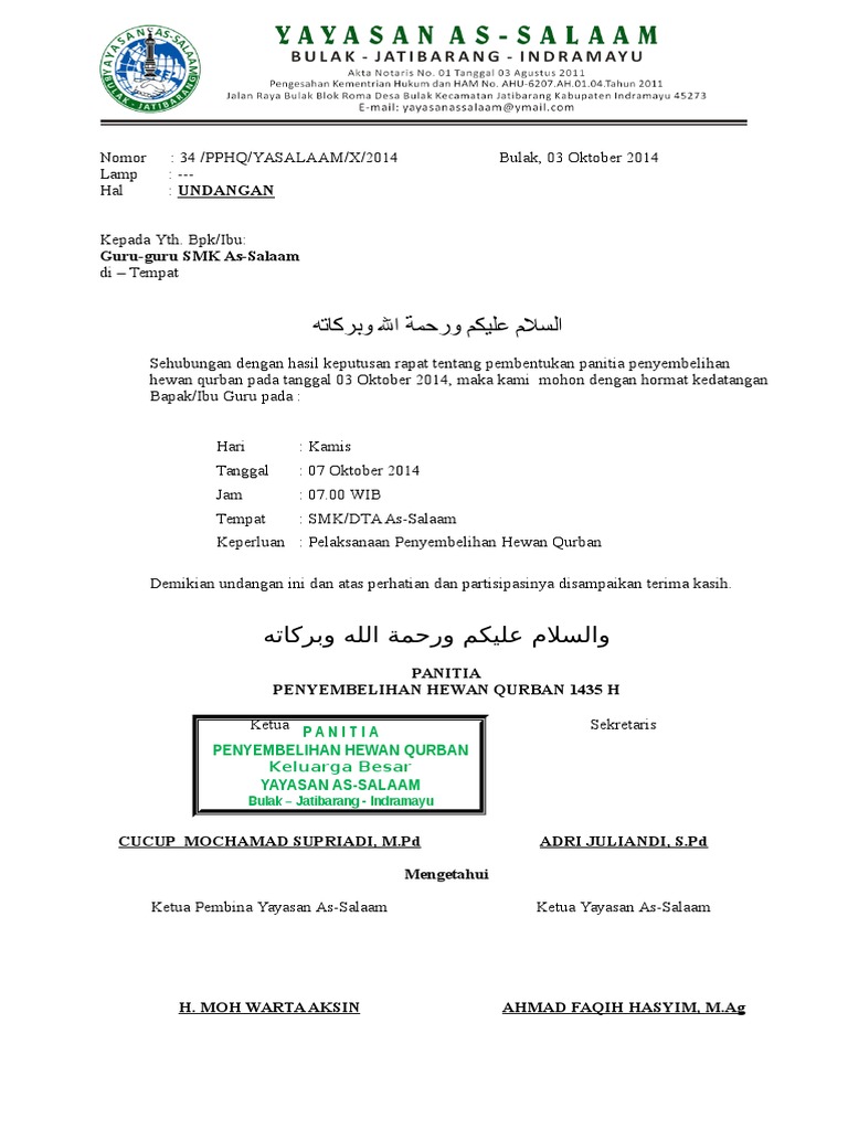 Unduh sebagai DOC PDF TXT atau baca online dari Scribd. Kamboja RT 04 RW 02 Kel. Surat undangan rapat pembentukan panitia idul adha 1436 h idul adha sudah sebentar lagi.